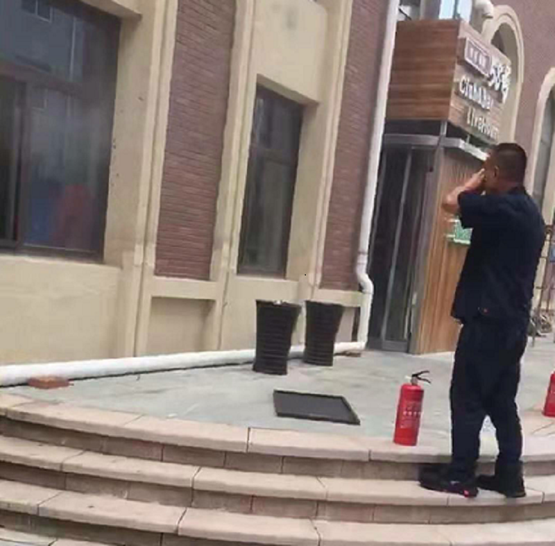 当天维修班张守武和路长英两位师傅,正在对A号楼北侧还未营业的商户进行每日的安全检查。当来到58号哪吒闹海酒吧北侧厨房窗户的时候,发现酒吧厨房内浓烟滚滚并顺着窗户缝不断的冒出黑烟。不好,有警情!二位师傅见此情景用力拍打厨房周围的窗户,又跑到正门急促的拍打,这才发现酒吧还未营业店内并没有人。这可急坏了二位师傅,赶紧打电话求援。