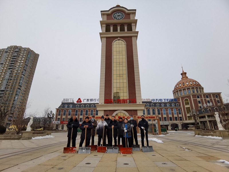 今年的正月初一,营口下起中雪。一大早,保洁师傅们第一个来到市府广场,以雪为令挥舞着铁锹,扫帚,动作干脆有力。清除广场上的积雪,杂物,扮靓市府广场。春节的这几天保洁员们每天都早早来到岗位,一天打扫六、七遍。虽然工作辛苦,但是大家却在工作岗位上干得很开心。“春节期间,人流量大,垃圾的清扫量比平时更多。我们商业物业的保洁们不怕苦不怕累,只为能给更多市民呈现一个干净、整洁的市府广场,是他们每天工作的动力”。