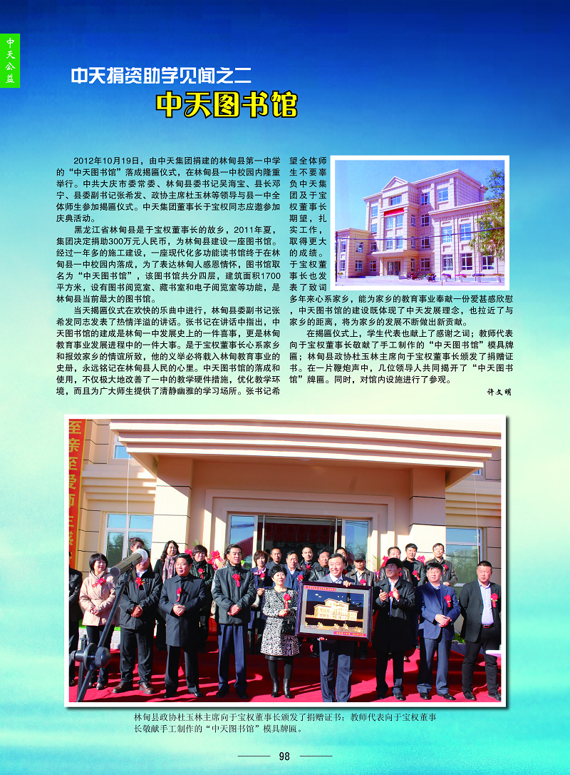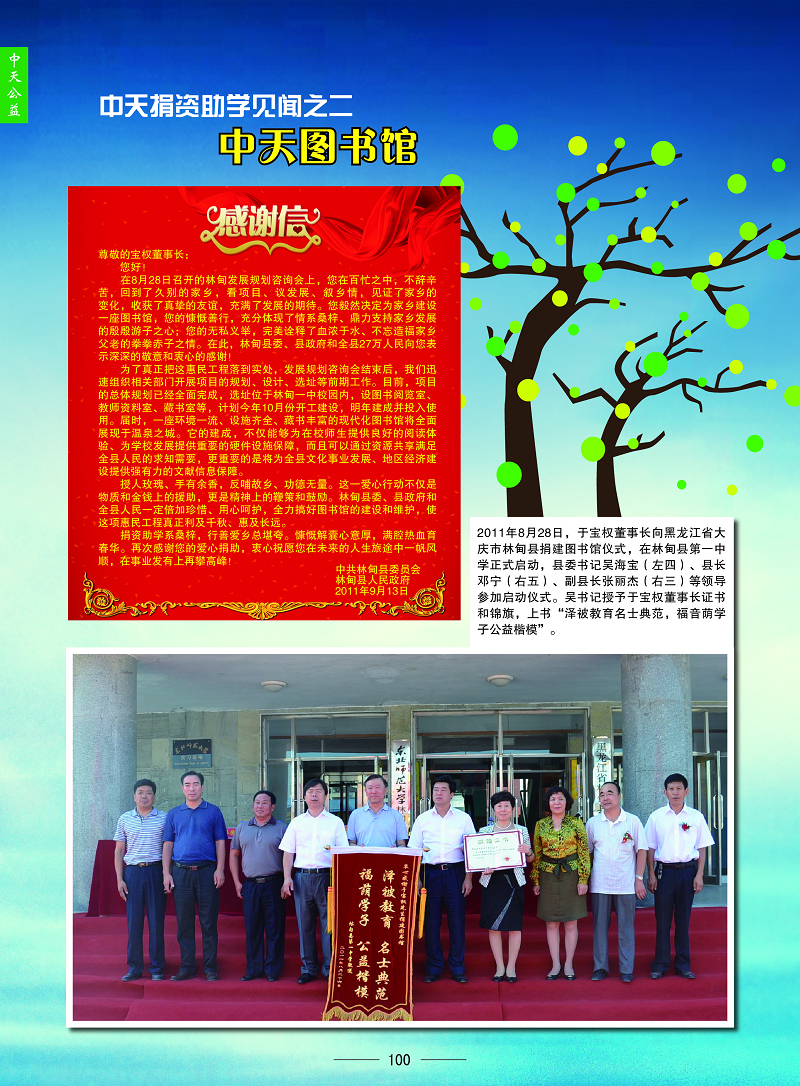 捐助300万为林甸建图书馆