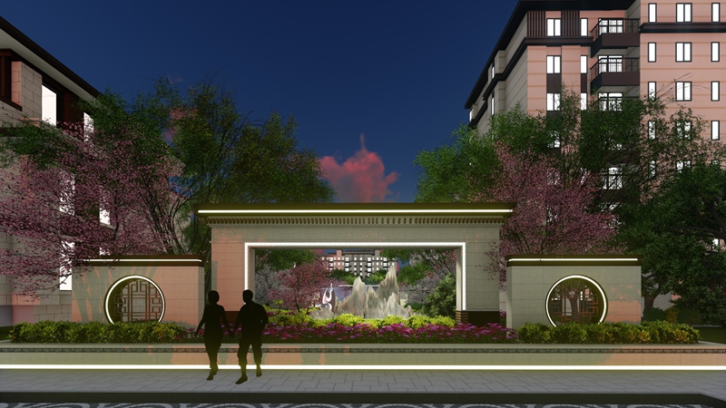 和谐的色彩搭配——设计中主要选用能代表华夏文明的几种色彩,即所谓的“国色”,以中国红、琉璃黄、长城灰、玉脂白、国槐绿为主,辅以原木色和黑色。营造出尊贵、喜庆、祥和、宁静、内敛的新中式景观空间。