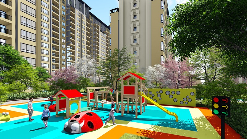 四大全龄活动区在慢跑环线四角部分,设立了四个活动区:“彩虹印象”“对弈雅轩”“健康生活”“谭心童趣”根据四个不同的主题风格,活动区的色彩各异,四个区块内设有健身器材、儿童游乐设施等,用来满足不同年龄段人群的健身、游乐需求。