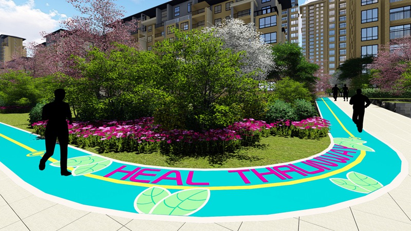 全园环线慢跑路也是本园区一大设计亮点为倡随健康生活,强调健康品质生活,园内设有一条有氧慢跑环线贯穿全园,总长1200米,也是本园区一大设计亮点。