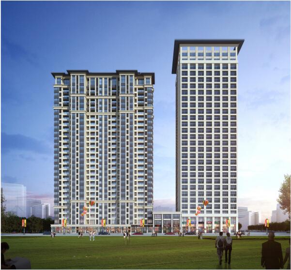 本项目规划用地面积为2.2万平,总建筑面积约为10.2万平,其中住宅8.2万平,共898户,地下车库1.3万平,车位210个,车库70个。商业7000平,共57户,园区配套用房1000平。地上规划布局5栋26至28层单体建筑、沿街一至二层商业服务网点、地下人防车库。