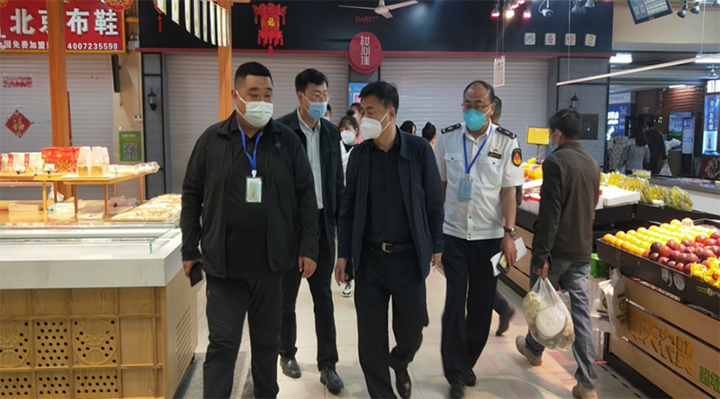 疫情期间,政府各级部门对疫情防控以及民生保障工作十分重视,5月26日,老边区、站前区复工复产复商复市首日,老边区区市场监督管理局领导一行专程来到中天农贸超级市场桃花源店检查指导疫情防控工作,农贸公司营运部经理孟祥松向检查组介绍了市场的防控措施落实情况,及在入口处显著位置张贴了农贸市场营畅通的场所码。现阶段,在疫情防控仍处于高压态势下,市场采取出入管控、卫生管控、商户限流、顾客限流这四项有效的措施。并告知检查组目前市场只开放西门,划分进出通道,安排专人值守,顾客进入市场会有工作人员对“营畅通”的下载使用情况进行逐一查验,保证“营畅通”场所码的真实有效性。通过以上措施,在保障民生需求的同时有效管控疫情风险,老边区市场局领导对中天农贸积极应对疫情,采取有效手段解决防疫保供问题的作法给与了充分的肯定,对市场的员工认真负责的工作态度提出了表扬,提出老边区其他的农贸市场要学习中天市场的管控措施,中天农贸市场勇于担当社会责任,切实做到防疫保供责任,再一次赢得了区领导的赞许,是为滨城当之无愧的行业标杆。