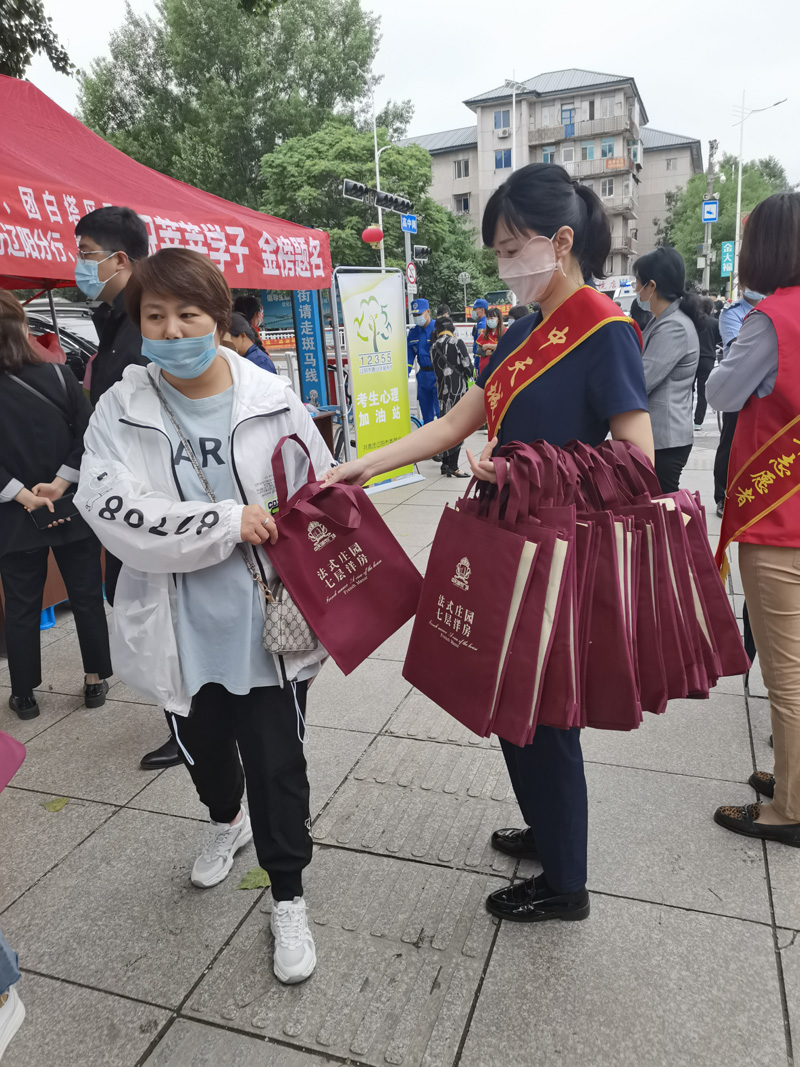 高考不仅是一场实力战,更是一场心理战。在考场外等待的家长往往比考生更焦急,他们也需要在炎炎夏日有一个地方能歇脚放松,高考服务站便是为考生家长提供歇脚纳凉,聊天放松的地方,方便家长轻松休息陪考。我们为陪考的家长们准备了无纺布购物袋和项目宣传单;同时也准备了一定数量的凳子方便家长们休息乘凉。在这段特殊的陪伴时间里,我们遇到了中天业主,他们陪同孩子参加高考,认出了我们的身影来到了我们的服务站,和我们的置业顾问聊一些有关房子还有考试的话题。在这激情的六月里,中天城市广场四期即将进户,五期七层洋房即将耀世加推,这些项目动态吸引了感兴趣的考生家长,纷纷前来咨询。